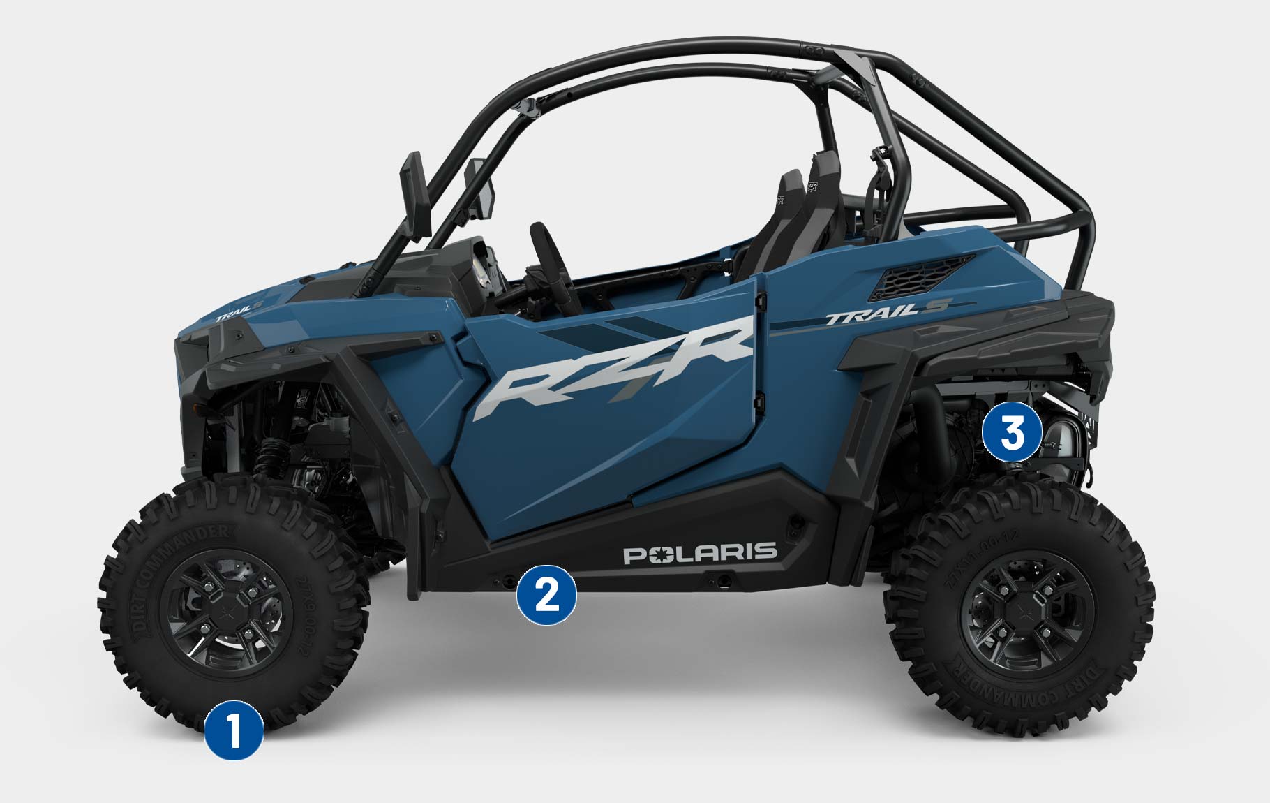 Le RZR Trail S délivre l'équilibre parfait entre performances, agilité et confort grace à une largeur de voie de 152,4 cm.