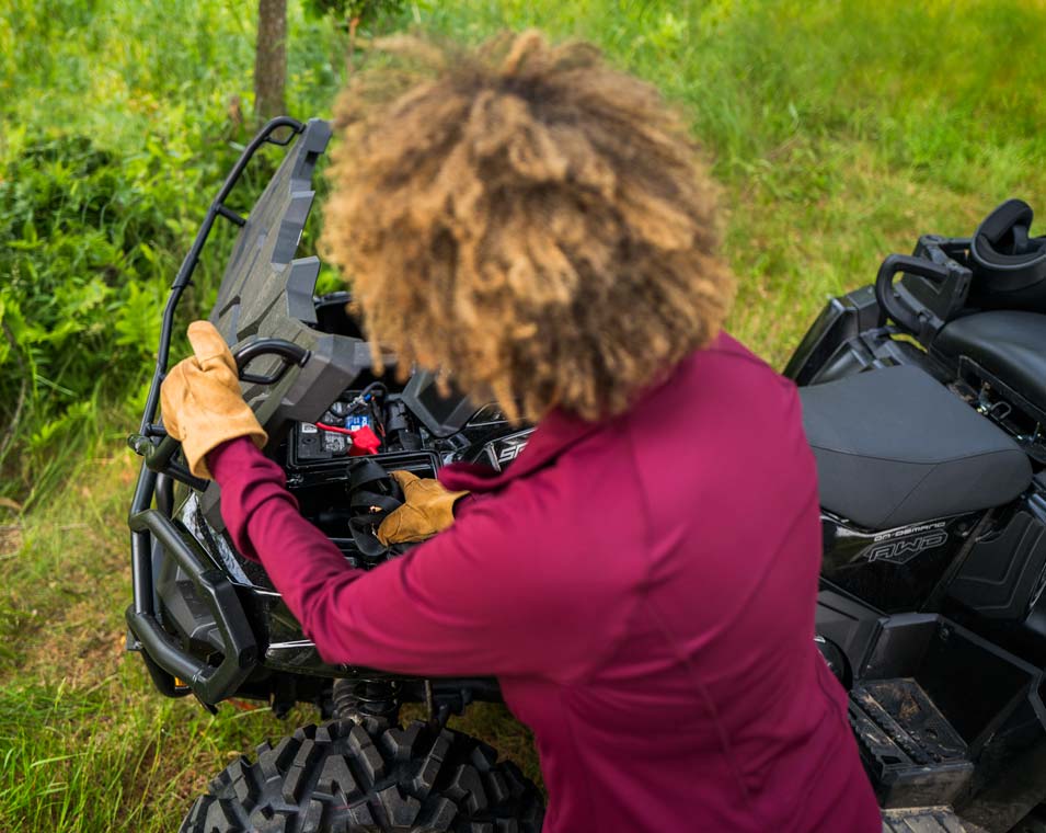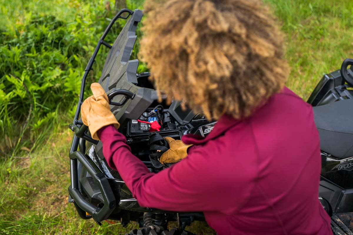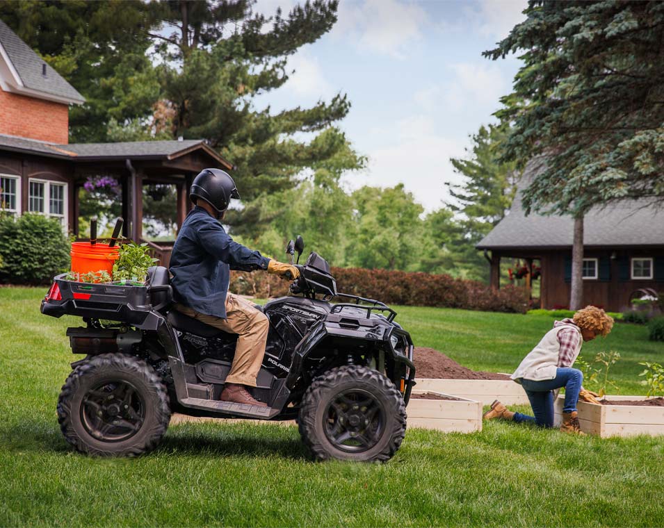Le Sportsman X2 570 vous aidera à faire face à tous les travaux grâce à sa capacité de traction énorme de 830 kg et de chargement de 181 kg de la benne basculante.